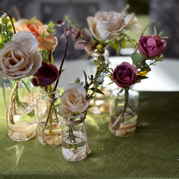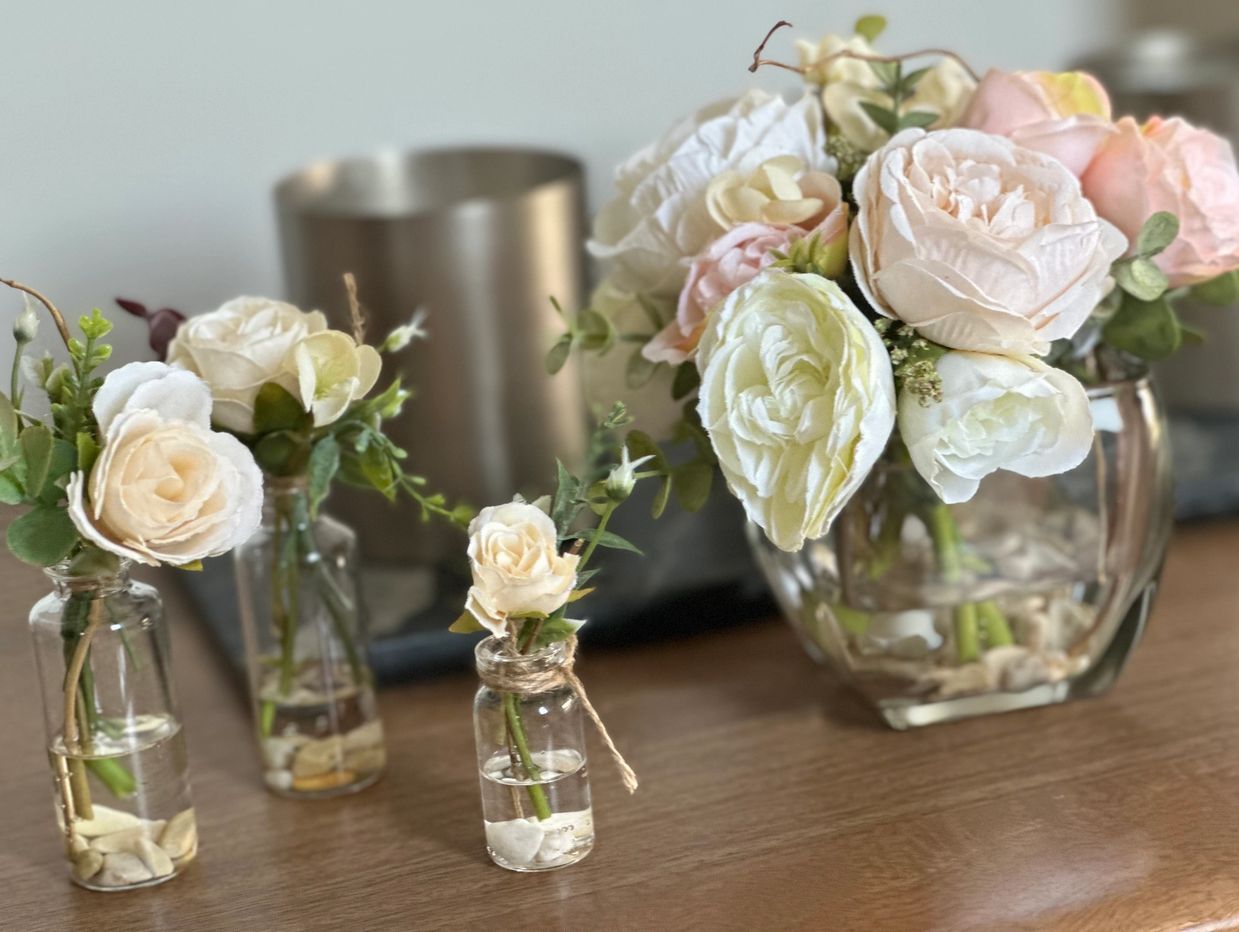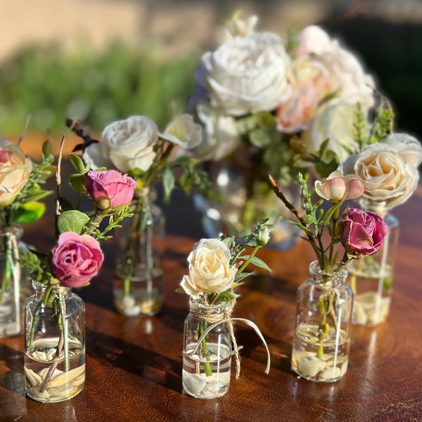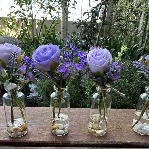 Arreglo floral mini en base de cristal con agua acrilica